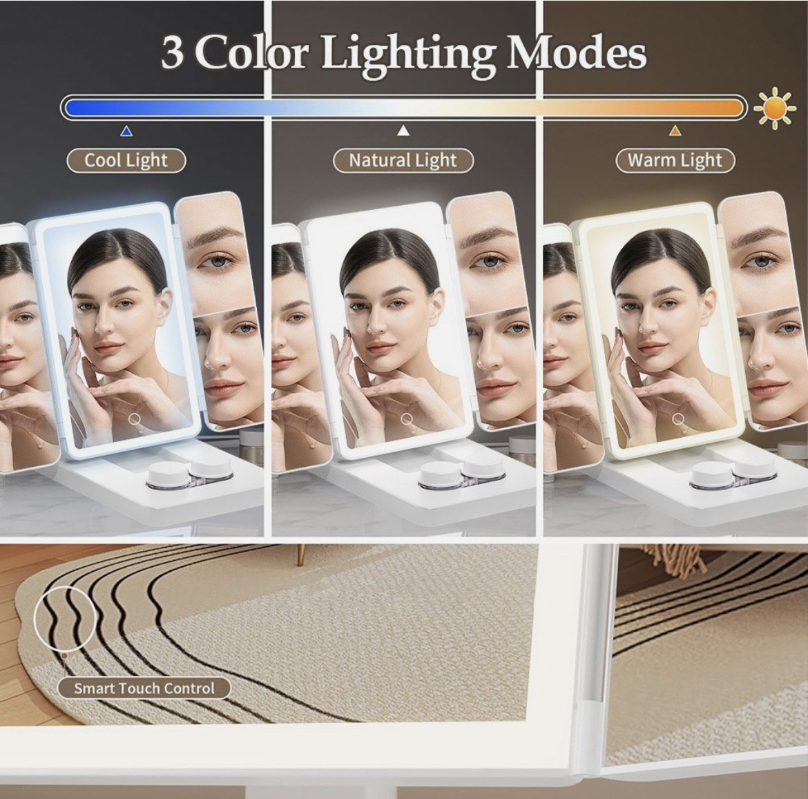 ofrece tres modos de iluminación ajustables: luz natural, cálida y fría.