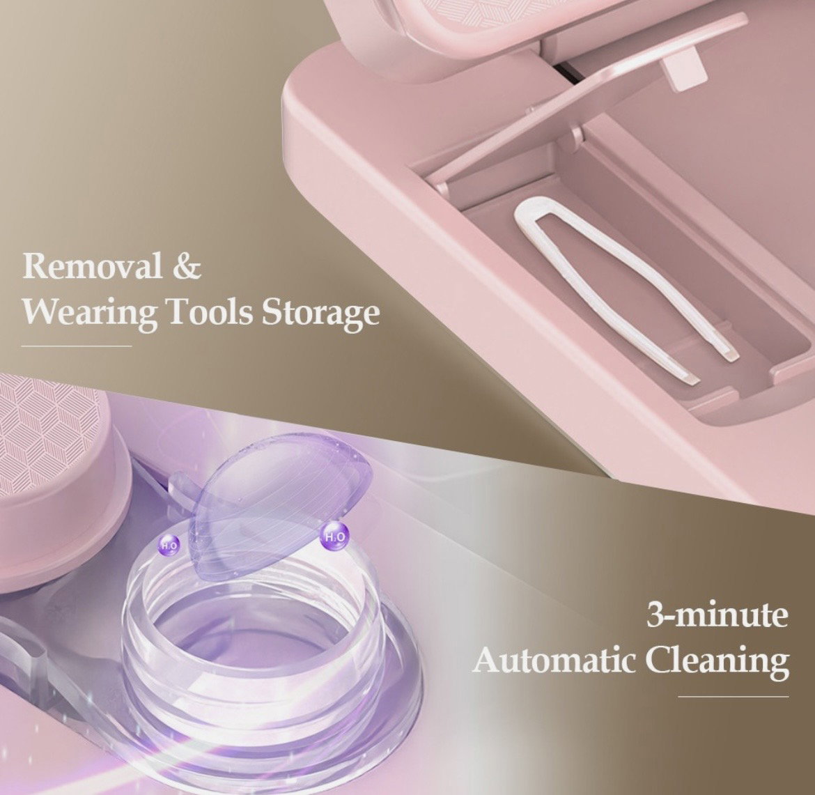 Limpieza de lentes de contacto: Mantén tus lentes limpias y listas con el compartimento de almacenamiento y limpieza de lentes de contacto. Limpia tus lentes de contacto en solo 3 minutos mientras preparas tu maquillaje para una experiencia de espejo verdaderamente multifuncional.