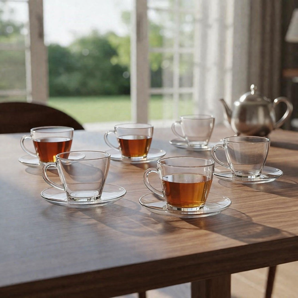 Set x6 taza de vidrio con plato 230cc VIENA